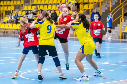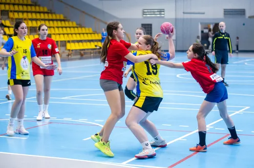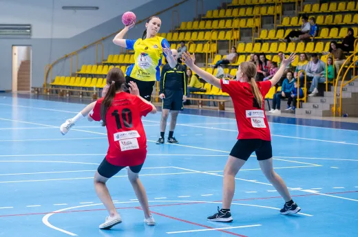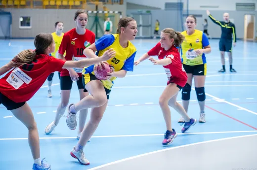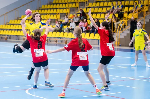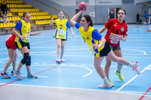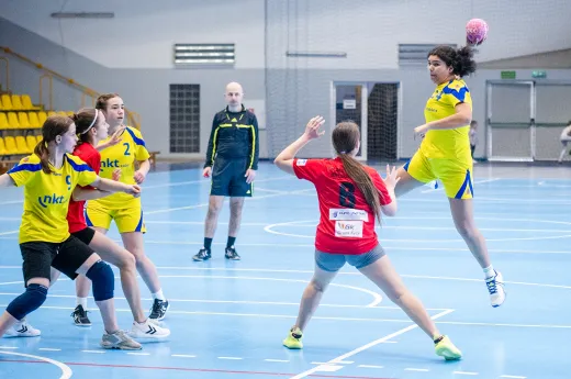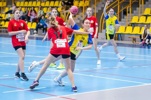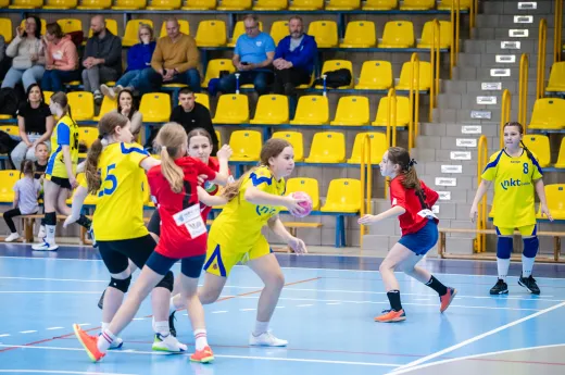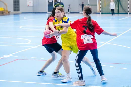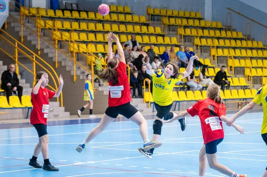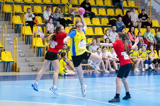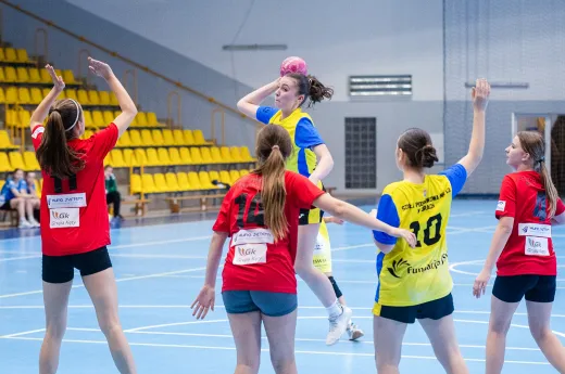 Turniej Piłki Ręcznej Dziewcząt. Zespoły: MTS Żory, MTS Żory I, KS Szczypiorniak Bielsko-Biała, KS Zgoda Ruda Śląska